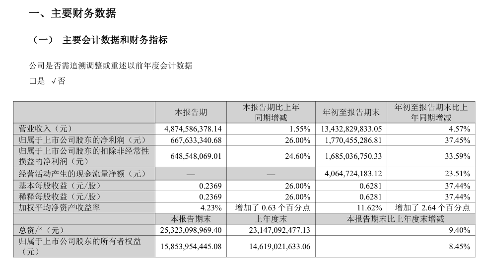 10月20日,北京燕京啤酒股份有限公司(燕京啤酒,000729.SZ)公布2025年第三季度報(bào)告。第三季度,公司營(yíng)業(yè)收入達(dá)48.75億元,同比增長(zhǎng)1.55%;歸母凈利潤(rùn)為6.68億元,同比增長(zhǎng)26%。
