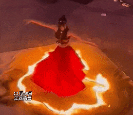 比如2024年11月,江西南昌一名女演員穿著特制裙子表演火裙舞時,裙擺被意外點燃,女子迅速脫裙自救。隨后,工作人員立即對現(xiàn)場進(jìn)行撲救,將火勢成功控制,沒有造成人員傷亡。