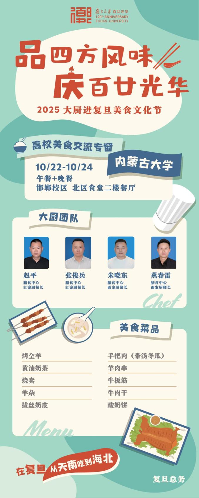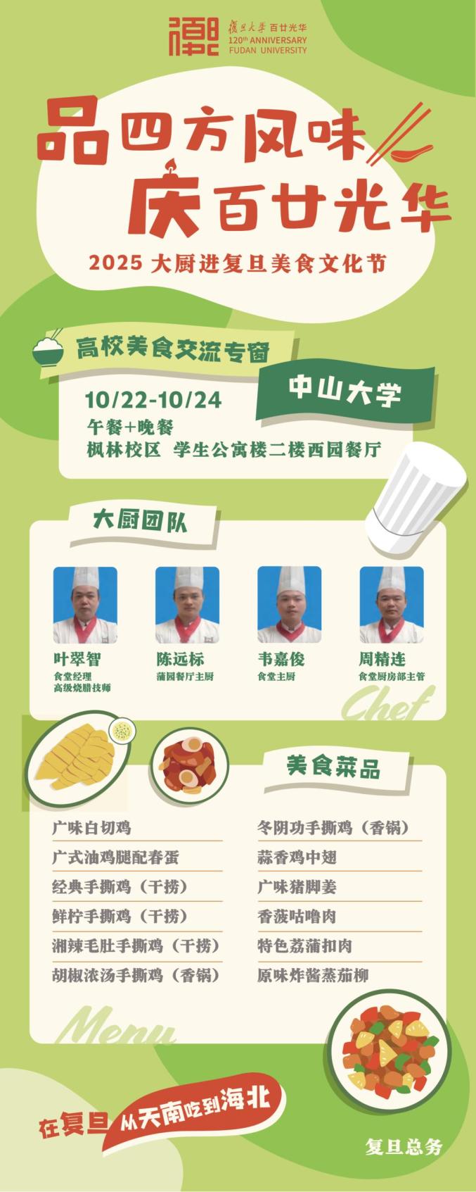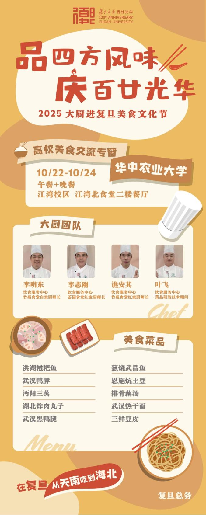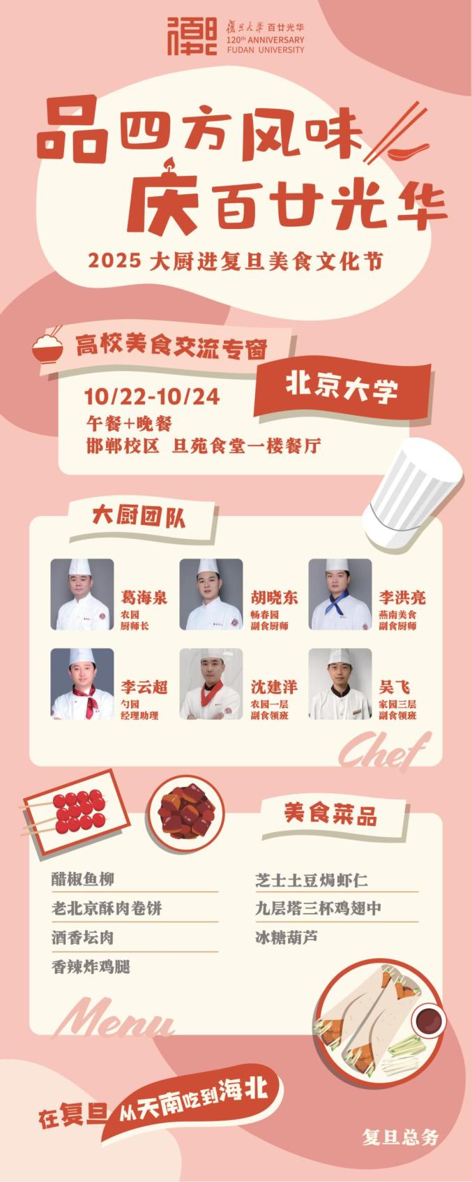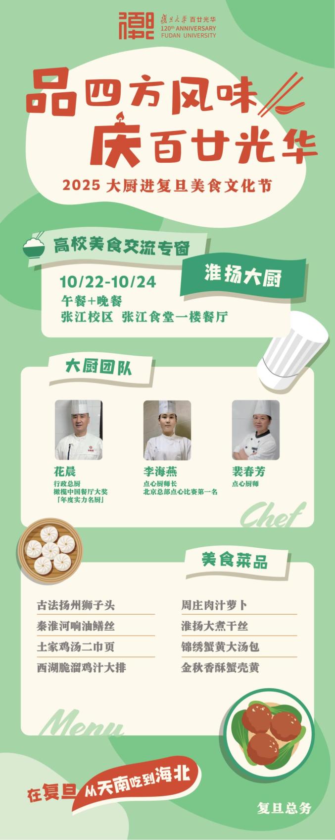 今天(10月21日)下午2:00,相約北食,品四方風(fēng)味,慶百廿光華——2025大廚進(jìn)復(fù)旦美食文化節(jié)正式開幕。