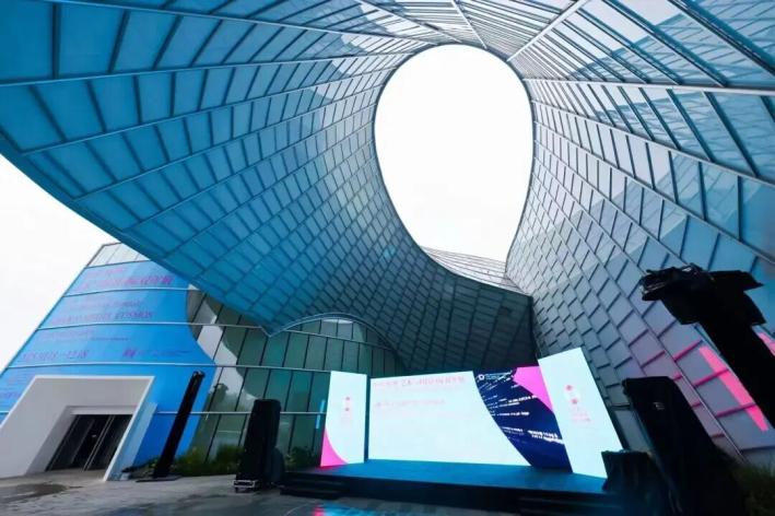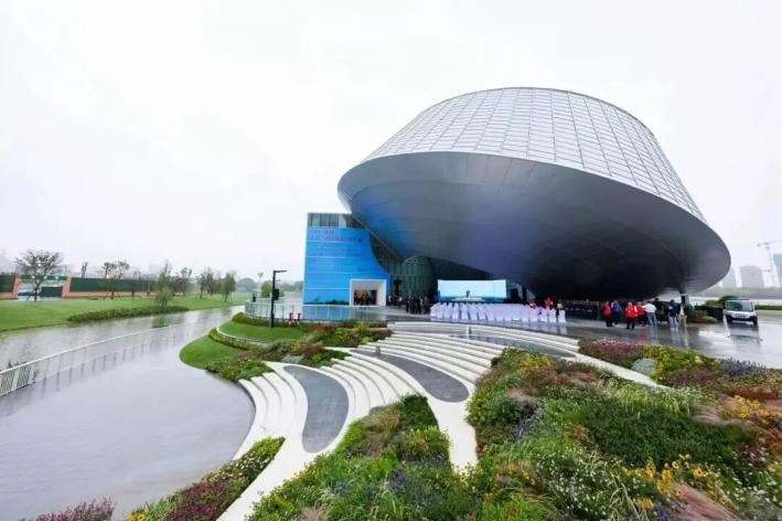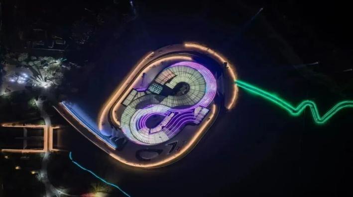 館體的外立面采用了玉石玻璃和鋁板創(chuàng)新結(jié)合的方式,到了夜晚時(shí)分,會(huì)呈現(xiàn)出360°動(dòng)態(tài)投影的絢麗效果。