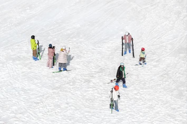 游客在轎子雪山室外滑雪場(chǎng)滑雪。新華社