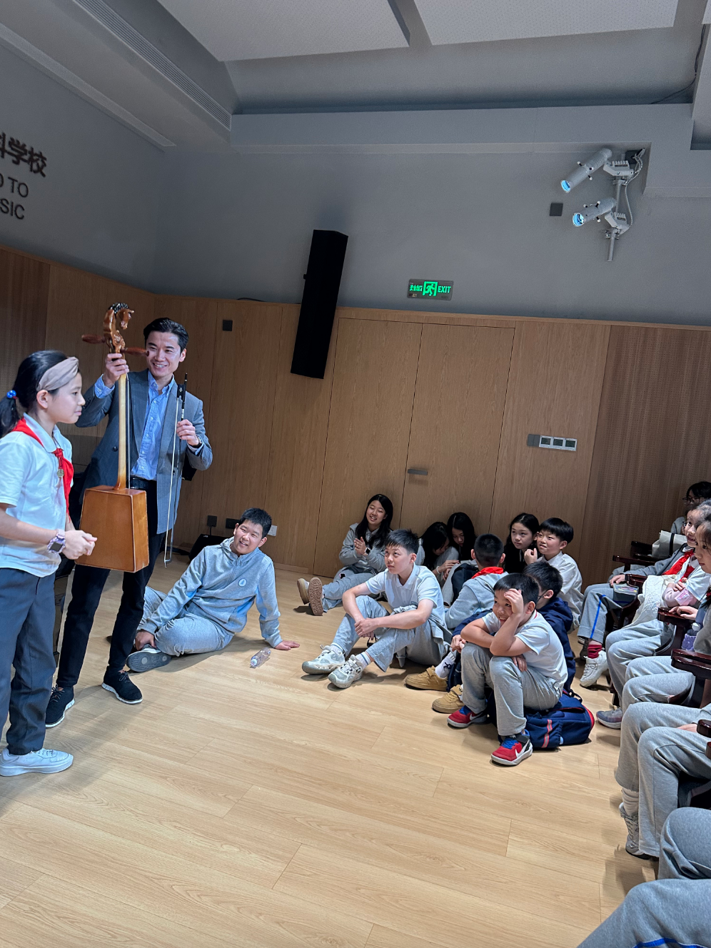 曾與大提琴家馬友友合作錄制專輯的馬頭琴演奏家奧其爾巴特,以“草原的回聲”為主題開講,從歷史、傳說和形制演變等方面,帶領(lǐng)師生領(lǐng)略了被譽為“草原靈魂”的馬頭琴的獨特魅力。
