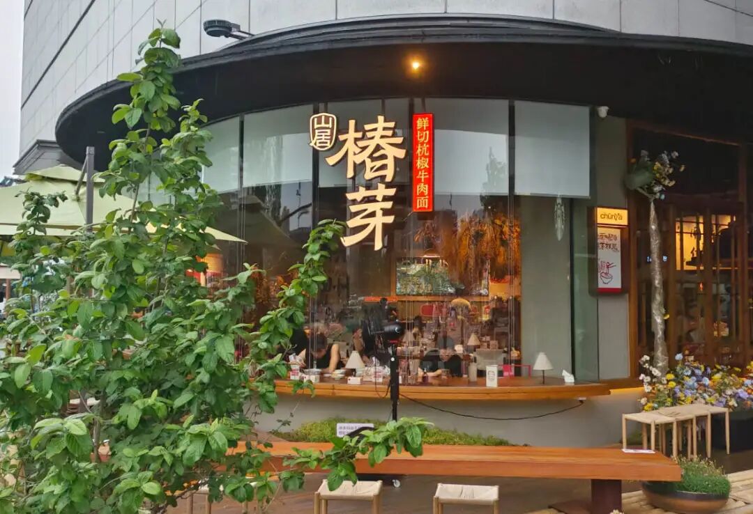 椿芽打破了傳統(tǒng)面館的印象,打造了明亮、輕松的用餐環(huán)境。品牌創(chuàng)始人苗姐在社交平臺(tái)分享,品牌最大的特色就是“講究”,“牛肉要現(xiàn)切,澆頭要現(xiàn)炒,面要顛鍋顛夠四十下,蝦仁要敲……”