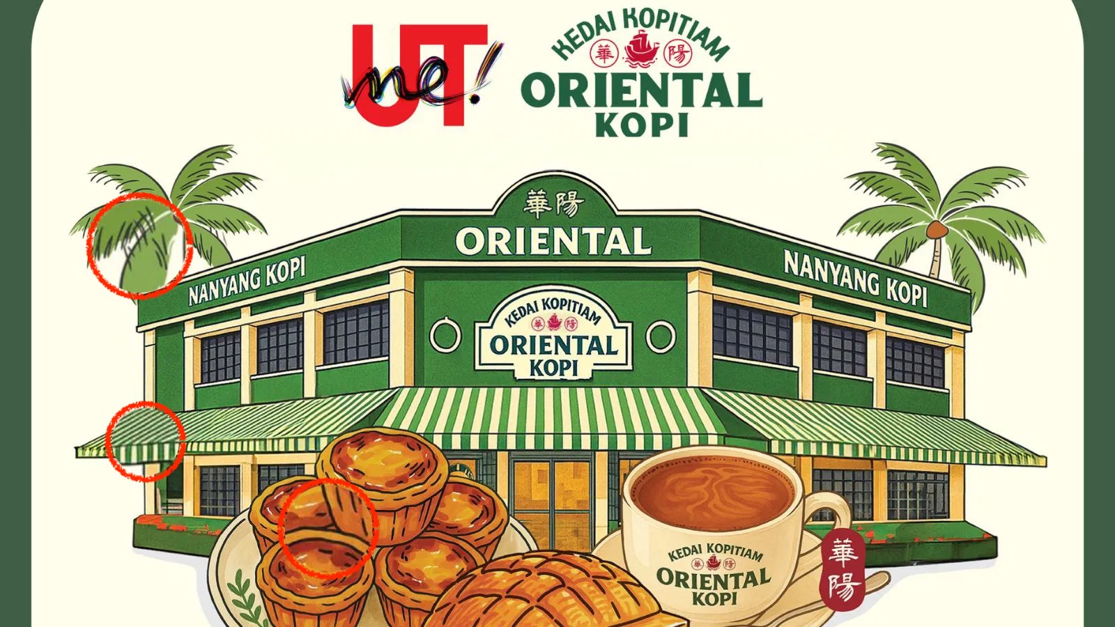 柔佛本地插畫師安妮絲表示,這些作品像是免費(fèi)AI軟件的產(chǎn)物?!扒瓣囎恿餍邪颜掌D(zhuǎn)成卡通風(fēng)格,這組圖案風(fēng)格和當(dāng)時(shí)的AI作品一樣?!彼€找出圖案可能的原型——華陽茶室官方菜單上的菜品照片,兩者構(gòu)圖與元素高度相似,像是照片直接“AI化”的結(jié)果。
