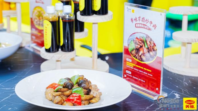 展臺上的粵味草菇炒牛肉,把經(jīng)典粵式小炒和醇厚湯底結(jié)合,帶來新體驗,這是雀巢專業(yè)餐飲研發(fā)團隊的作品。