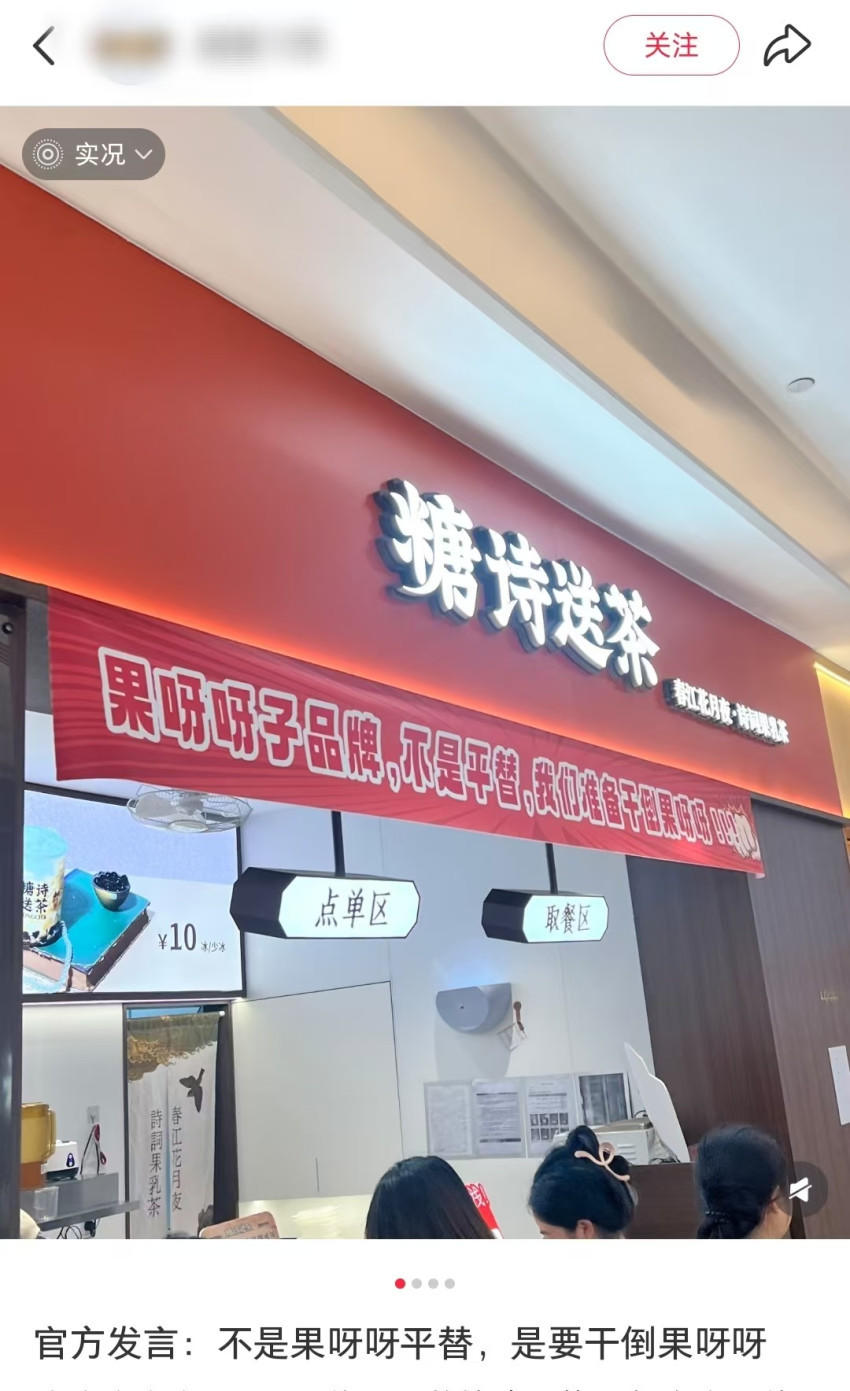 近日,有網(wǎng)友在社交平臺曬圖,果呀呀旗下茶飲品牌“糖詩送茶”在門口拉了一條特別的橫幅:“果呀呀子品牌,不是平替,我們準備干倒果呀呀”。這一極具話題性的表述迅速引發(fā)討論,讓大家的關(guān)注點聚焦到了果呀呀的子品牌“糖詩送茶”。