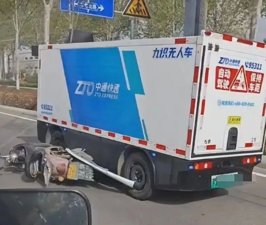 2025年4月8日,有網(wǎng)友拍到一輛倒地的電動(dòng)車卡在無人快遞車左前輪下,但車輛仍繼續(xù)行駛;兩個(gè)月后,2025年6月9日,又有網(wǎng)友拍到兩輛印有韻達(dá)、申通及“九識(shí)無人車”字樣的無人車在道路上“僵持”,伴隨語音喊話“你讓一下,誰讓你在這里送貨的,你有沒有駕駛執(zhí)照,退、退”,現(xiàn)場交通一度受阻。
