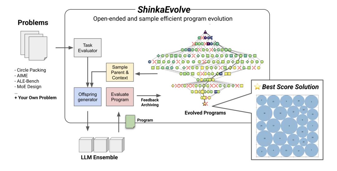 今年9月,Sakana AI開源了ShinkaEvolve,該框架將大模型與一種算法相結(jié)合,幫助其針對各種潛在問題提出解決方案,并縮小到最相近的問題。該公司聲稱,與Transformer架構(gòu)相比,這種方法更高效,更能提出創(chuàng)造性的解決方案。