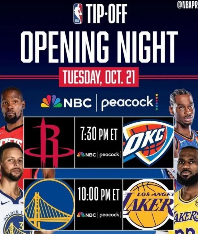 2025 - 26賽季,NBA常規(guī)賽今日正式拉開帷幕,揭幕戰(zhàn)共有兩場比賽,分別是火箭VS雷霆和勇士VS湖人?;鸺?duì)在今年休賽期引進(jìn)杜蘭特后,整體實(shí)力更上一層樓,成為今年總冠軍的有力爭奪者,而雷霆是衛(wèi)冕冠軍,這場對決看點(diǎn)十足。