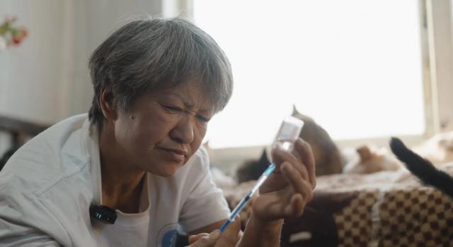 她半夜看手機(jī)自學(xué)化驗(yàn)單、針頭號(hào)、注射位;第一針扎下時(shí)手在抖,狗在流淚,她也在流淚。