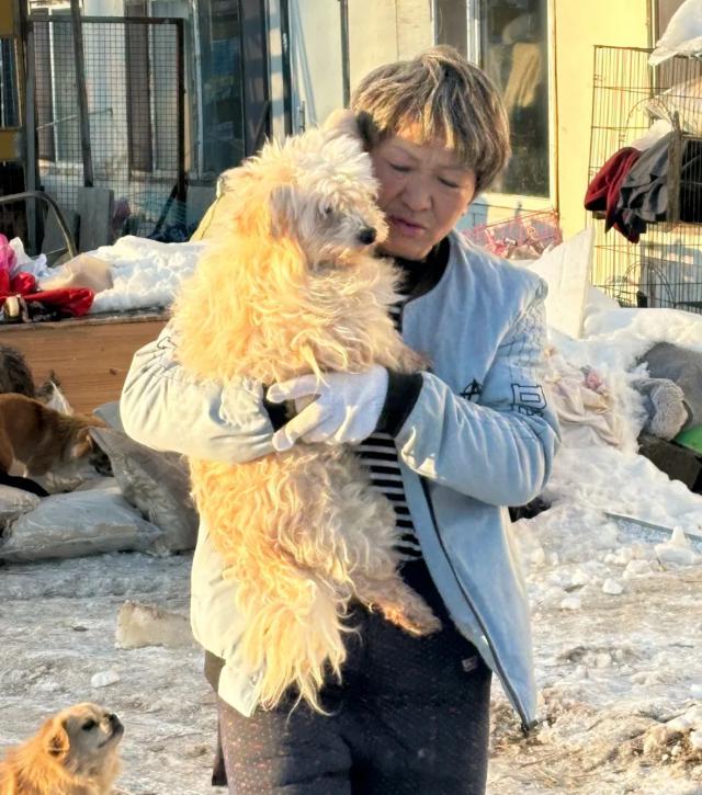 她格外沉默,走到每只狗面前,撫摸它們的頭說:“對(duì)不起,今天……真的沒得吃了?!?/p>