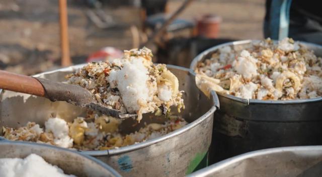 有時(shí),她推著滿車爛菜回來,看著皺巴巴的菜幫、發(fā)黑的飯團(tuán),一邊倒進(jìn)鍋里一邊嘆氣:“今天,又不夠了?!?/p>