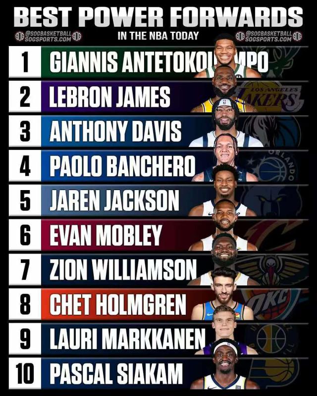 大前鋒前十依次是:1字母哥、2詹姆斯、3濃眉哥、4班切羅、5賈倫杰克遜、6莫布里、7錫安、8切特、9馬爾卡寧、10西卡。字母哥無疑是現(xiàn)役第一大前鋒,是現(xiàn)役聯(lián)盟前三,正值巔峰,攻防一體能力出色。詹姆斯雖年紀(jì)大了,但球商還在,無球能力也開發(fā)得不錯(cuò),新賽季可能更多出現(xiàn)在3號(hào)位。