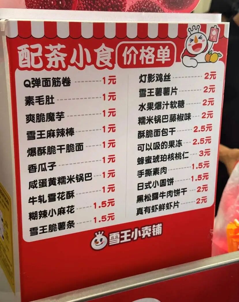 其次,蜜雪冰城拓展消費場景。2021年下半年開始在門店上新小零食,2025年1月鄭州旗艦店也有大量配茶小食。零食定價1 - 3元,很受歡迎,如天貓旗艦店爽脆魔芋銷量達7000 +。