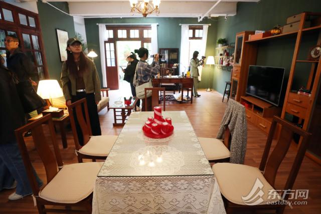走進(jìn)洋房,驚喜不斷。電影里的場景被原樣搬入,轉(zhuǎn)角是飄著焦香的“上??Х取绷闶蹍^(qū),墻上掛著電影劇照的打卡區(qū)等著人們合影。最熱鬧的當(dāng)屬“菜肉餛飩美味會客室”,未來兩個月,30多場活動將在此舉辦。