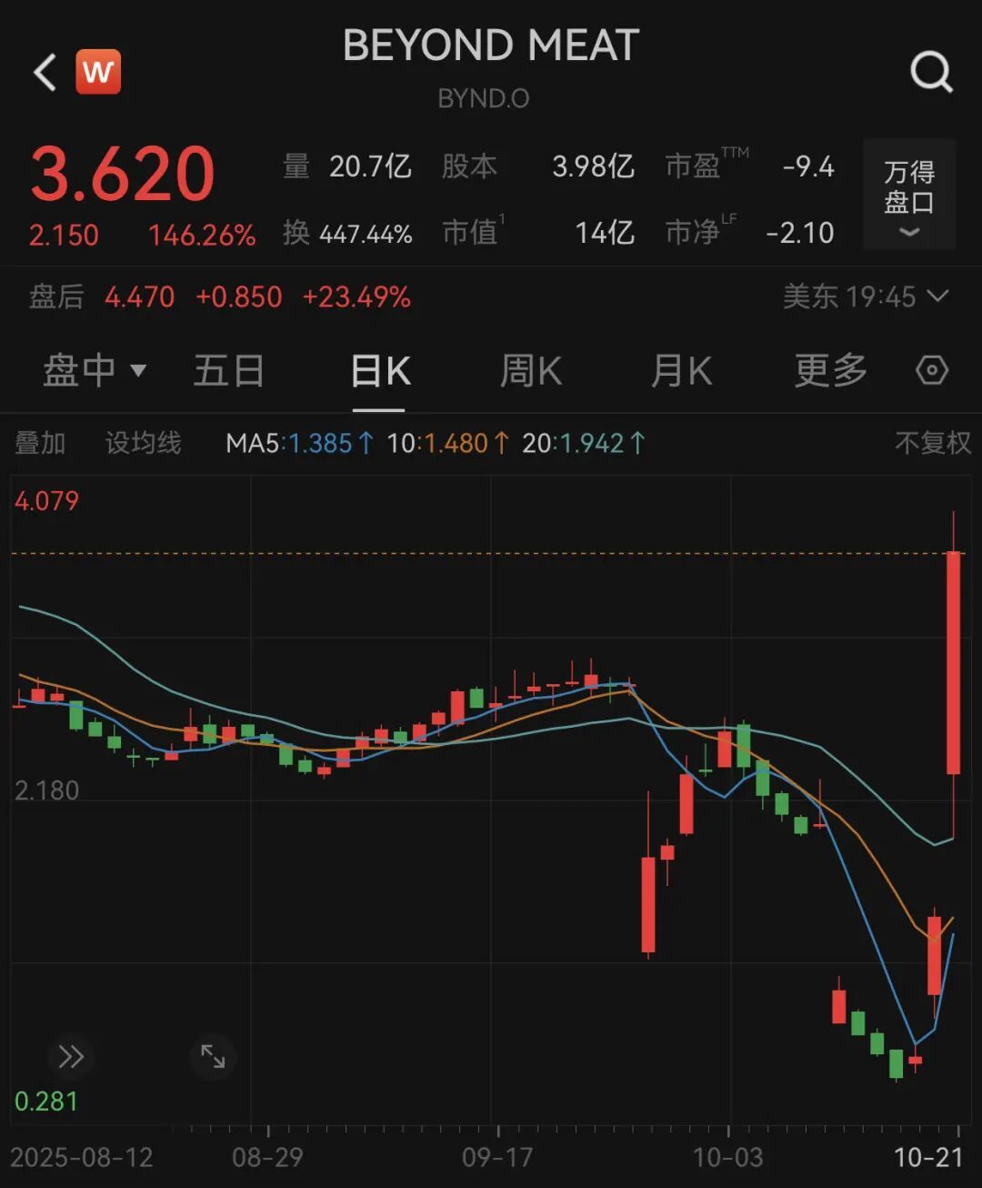 飆升!2天漲幅超450%,人造肉龍頭股再度火爆