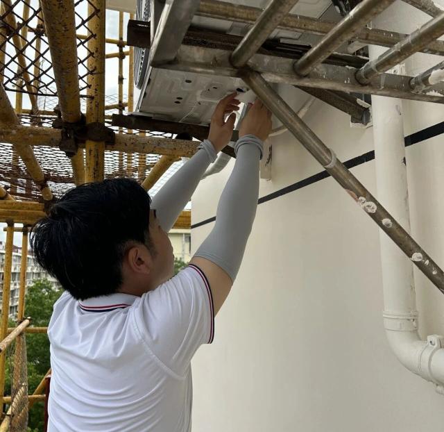 除了進(jìn)行科普宣傳,社工們還將精準(zhǔn)服務(wù)落實到細(xì)微之處。針對不少居民反映的空調(diào)冷凝水接管難題,他們提前整理了常見品牌專用出水接頭型號清單,并主動上門指導(dǎo)居民挑選合適的配件。當(dāng)居民準(zhǔn)備好材料后,社工們又變身“安裝小分隊”,帶著工具包免費上門服務(wù)。李阿姨家的空調(diào)外機(jī)位置特殊,自己操作困難,社工小張毫不猶豫地為其細(xì)致安裝。李阿姨連聲道謝:“既專業(yè)又耐心,真是幫了我大忙!”