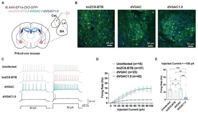 圖6. 從頭設(shè)計(jì)可抑制小鼠腦內(nèi)神經(jīng)元活動(dòng)的電壓門控陰離子通道dVGACs