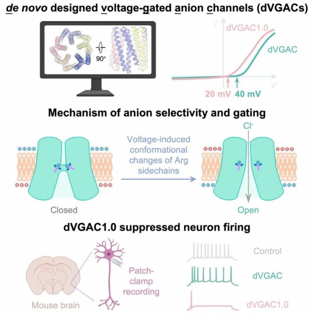 盧培龍研究團(tuán)隊(duì)聯(lián)合李波等校內(nèi)團(tuán)隊(duì),歷經(jīng)六年努力,在世界上首次通過“從頭設(shè)計(jì)”的方法,成功創(chuàng)造出一種功能完整、可調(diào)控的電壓門控陰離子通道(dVGAC)。