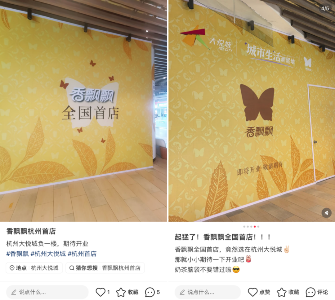 這些快閃店通過店員現(xiàn)場(chǎng)拆解泡制流程,傳遞“真茶鮮奶”價(jià)值,快閃店收獲的短期聲量讓香飄飄驗(yàn)證了線下體驗(yàn)的價(jià)值,也為此次固定首店的開設(shè)積累了經(jīng)驗(yàn)。