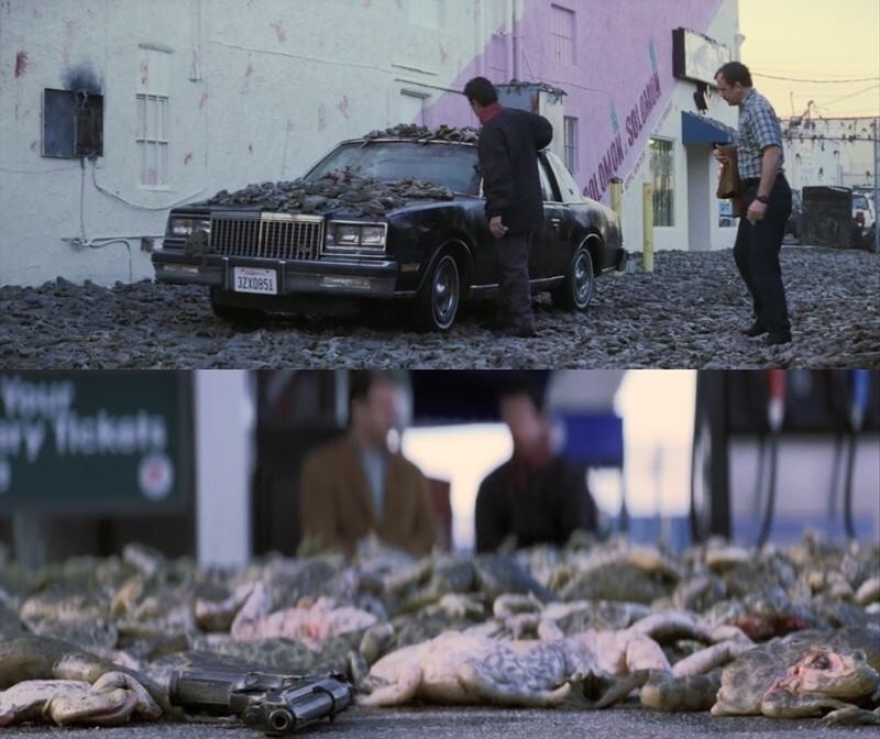 導(dǎo)演弱化宏大敘事,更靠近拍攝對(duì)象。2014年改編品欽的《性本惡》時(shí),他讓演員忠實(shí)念出原著文本,1970年洛杉磯的嬉皮士語言是關(guān)鍵。