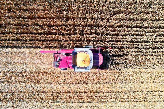 10月21日,在通遼市科爾沁區(qū)豐田鎮(zhèn)哈拉滿罕村博豐農機農牧業(yè)專業(yè)合作社的玉米地里,一臺籽粒收割機正開足馬力工作。機器開過,玉米稈很快被吞進去,金黃的玉米籽粒像流水一樣倒進倉儲箱,實現(xiàn)了從田間直接脫粒后送到“糧食銀行”的一步到位。