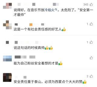 近日,在山東日照舉辦的一場音樂節(jié)上,有觀眾燃放“冷煙花”。臺上歌手發(fā)現(xiàn)后,立刻中斷演出并及時制止,還告訴大家:“安全第一才最帥!”