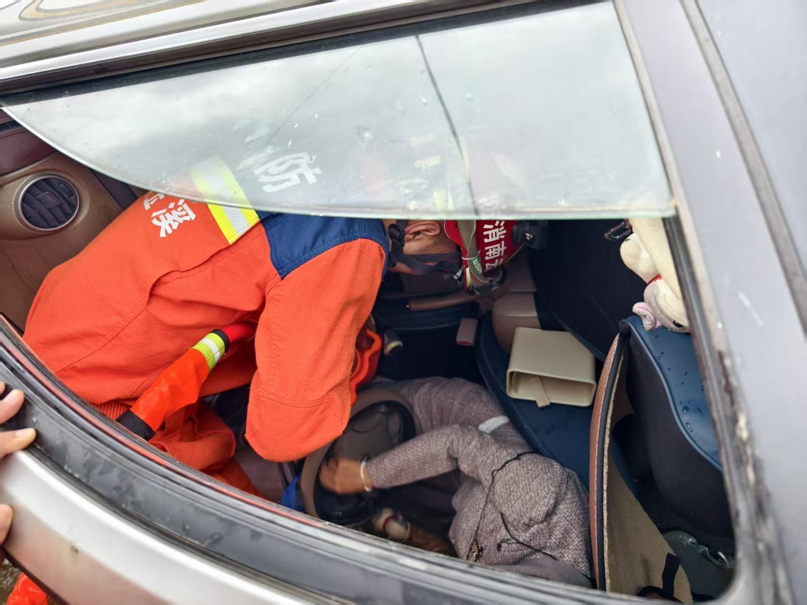 指揮員了解情況后,迅速制定救援方案,組織救援人員用液壓破拆工具對事故車輛的前擋風(fēng)玻璃和車門進行破拆。經(jīng)過約10分鐘緊張有序的救援,成功救出被困女子,并將其轉(zhuǎn)移到安全區(qū)域,移交給120急救人員。經(jīng)檢查,該女子身體并無大礙。