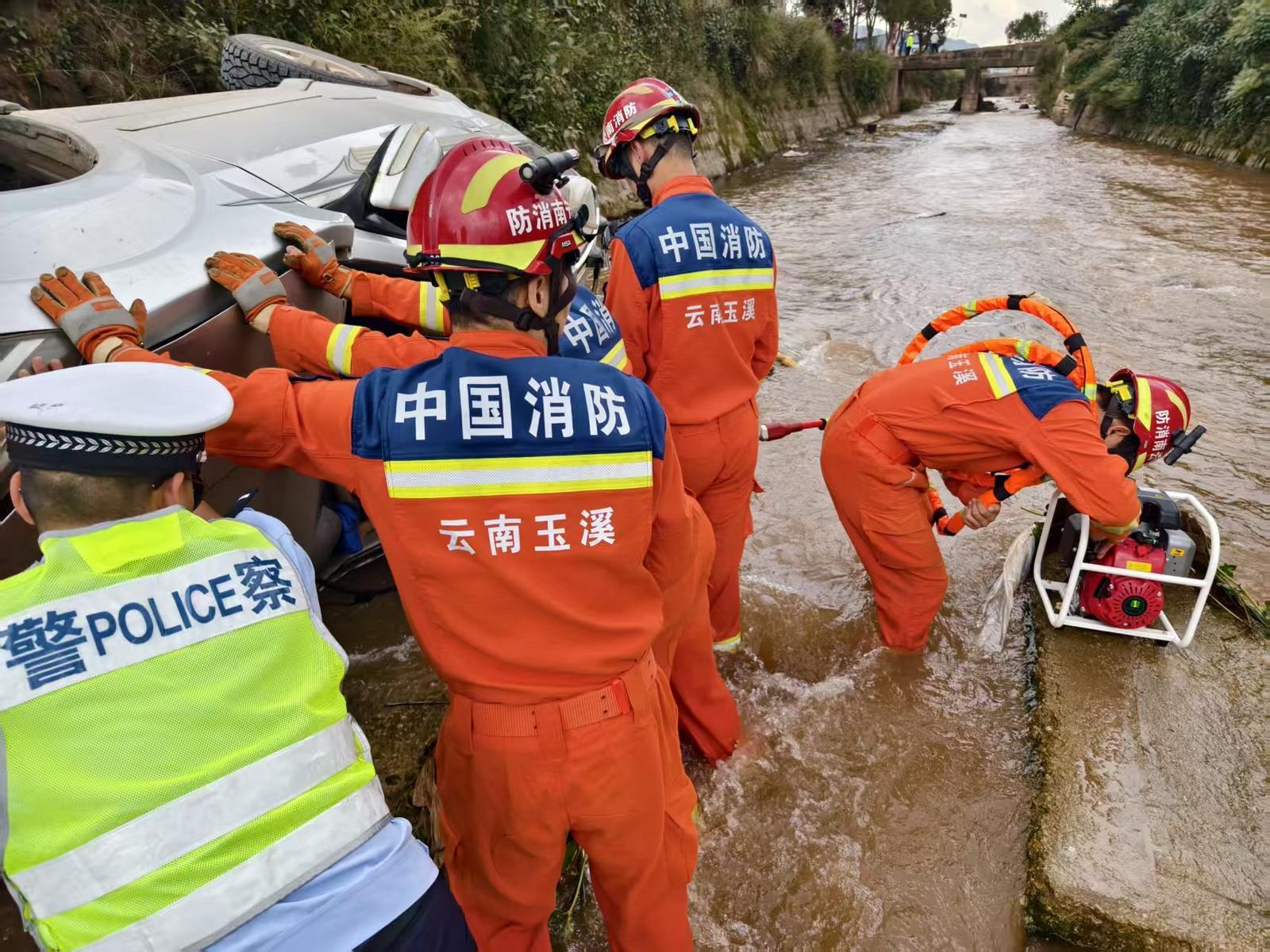 驚險!玉溪女子駕車墜河,消防緊急救援化險為夷