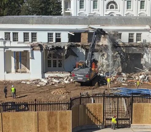 社交媒體上傳播的照片顯示,東翼的一棟白色建筑正被挖掘機(jī)逐步分解、移除。