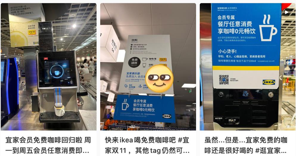 比如在宜家餐廳,任意消費就可以0元喝咖啡,還能無限暢飲;魏家涼皮促銷時直接送咖啡,平常9.9元可無限續(xù)杯;亞朵酒店不僅為客人提供免費咖啡,客人外出時還會貼心準備外帶咖啡。