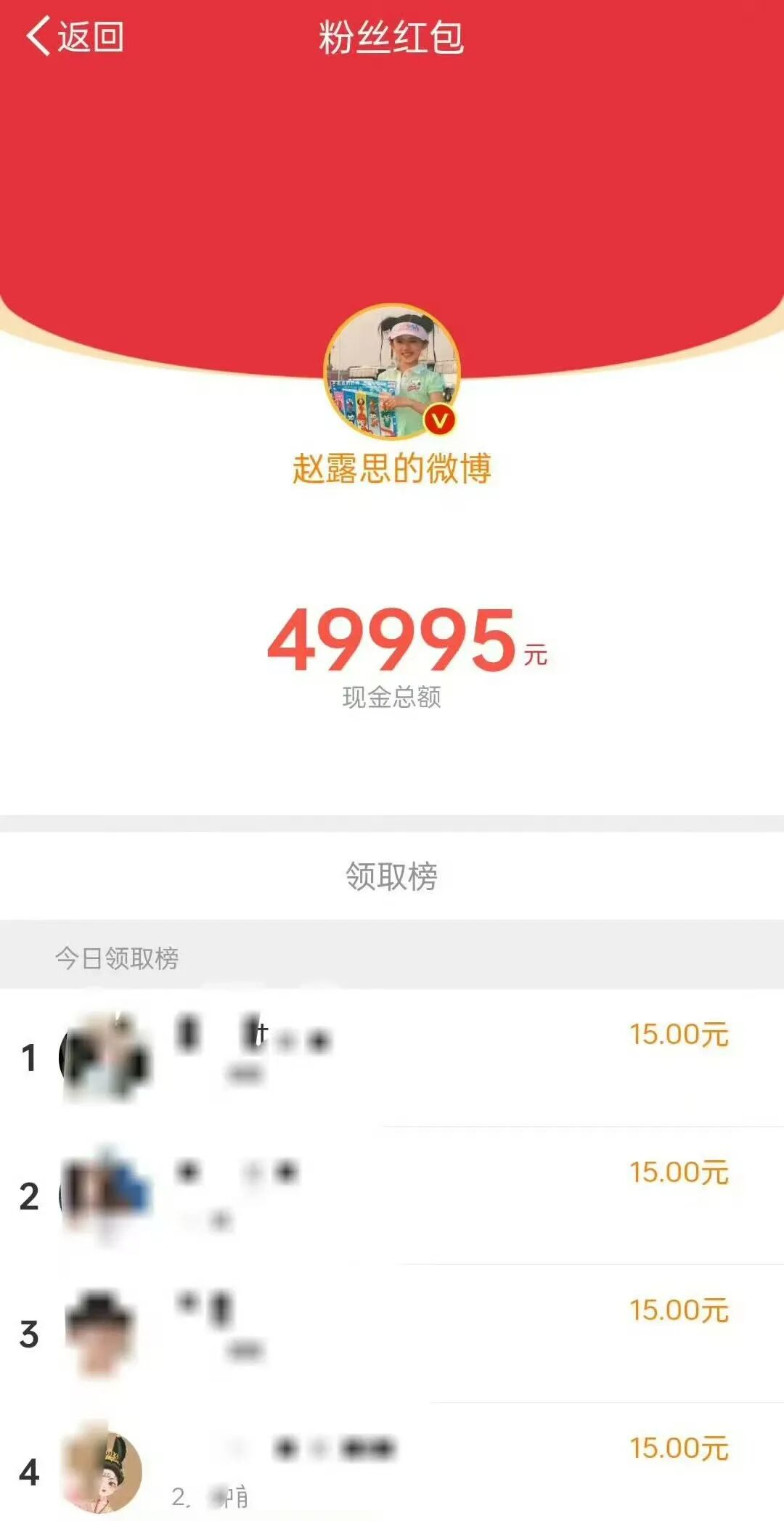 女明星里,趙露思也緊跟其后?!吨楹熡衲弧飞暇€時(shí),她連續(xù)兩天發(fā)紅包,第一天49995元,第二天49999元,兩天近十萬元,被夸“撒錢都甜”。有網(wǎng)友調(diào)侃:“搶到露思紅包,原諒編劇了?!?/p>