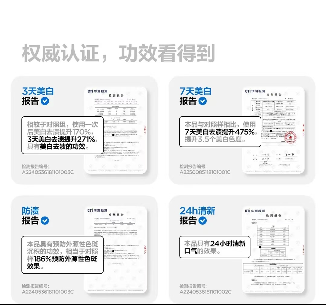 比如,公開完整的第三方檢測報(bào)告,明確標(biāo)注檢測方法、樣本數(shù)量、適用人群等關(guān)鍵信息;將“效果因人而異”的提示以更醒目的方式呈現(xiàn),而非用淺色小字標(biāo)注。