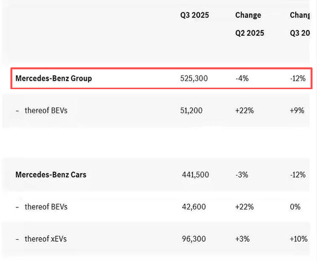 官方數(shù)據(jù)顯示,奔馳集團(tuán)第三季度全球銷量為52.53萬輛,同比下滑12%;