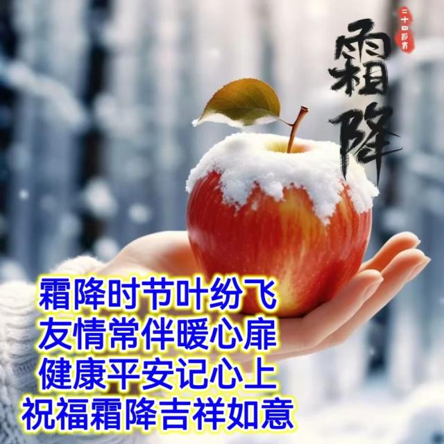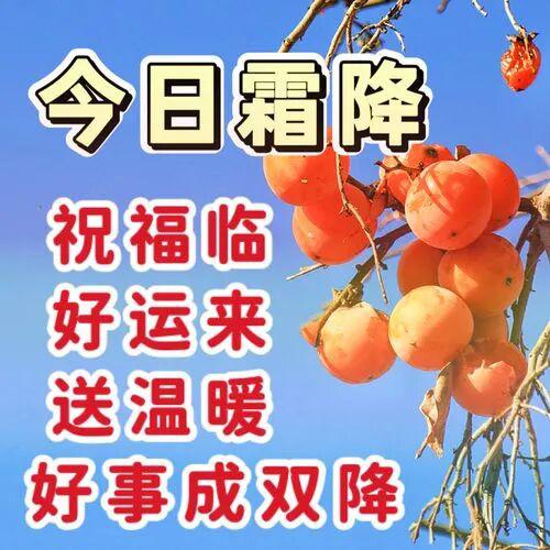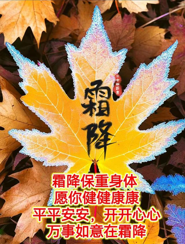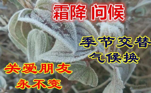 霜降時溫度下降,要注意保暖以保障健康;霜降帶來福氣,讓您心情快樂歡暢;霜降降下財(cái)運(yùn),使您輕松發(fā)財(cái);霜降降下美麗,讓您身材苗條;霜降降下如意,讓您事事順利開心;霜降送來祝福,問候到您身旁。愿福氣降臨在您身邊,讓您開心無限!