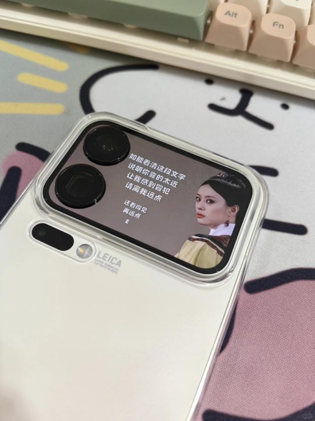 各種趣味玩法讓小米17背屏超脫原有功能,成了網(wǎng)友開發(fā)腦洞的試驗(yàn)場。網(wǎng)友們花式整活,只有想不到,沒有做不到。比如把攝像頭變成小狗的鼻孔、李云龍的望遠(yuǎn)鏡、雷軍的眼睛;“甄學(xué)家”把經(jīng)典語錄做成“記事本”放在背屏上;還有畫風(fēng)別致的精神標(biāo)簽。