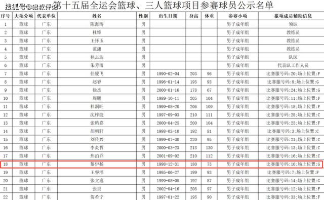 廣東男籃上交的16人全運(yùn)會(huì)大名單具體如下: