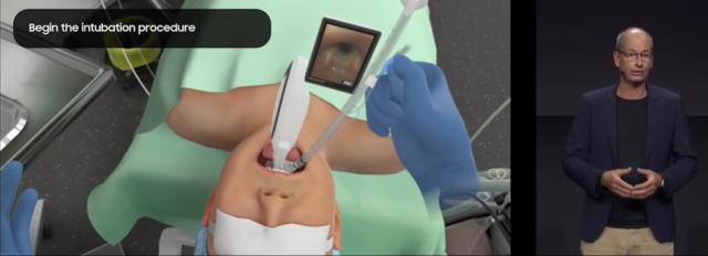 除了娛樂等消費級應(yīng)用場景,Galaxy XR還能用在醫(yī)療保健領(lǐng)域。傳統(tǒng)插管教學(xué)依賴模型和有限的臨床實踐,而XR技術(shù)通過高度逼真的沉浸式模擬徹底改變了這一過程。借助Galaxy XR的虛擬喉鏡等設(shè)備,學(xué)員可在三維環(huán)境中反復(fù)練習(xí)插管操作,獲得真實的觸覺與視覺反饋。系統(tǒng)可全程記錄操作數(shù)據(jù),提供關(guān)于操作時效、手法安全、氧氣維持及最終結(jié)果的即時反饋。這種可擴展的XR培訓(xùn)模式,使教育者能更高效、安全地培養(yǎng)臨床技能。借助更加成熟的虛擬技術(shù),三星打開了XR頭顯更多的應(yīng)用場景。