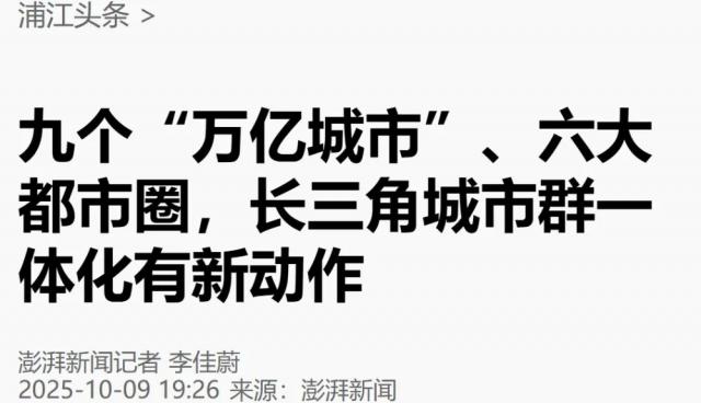 如果給全國城市群和都市圈找一個成功典范,已趨成熟的長三角肯定算一個。最近長三角六大都市圈有了新動作,十一節(jié)后第一天就馬不停蹄地開大會。