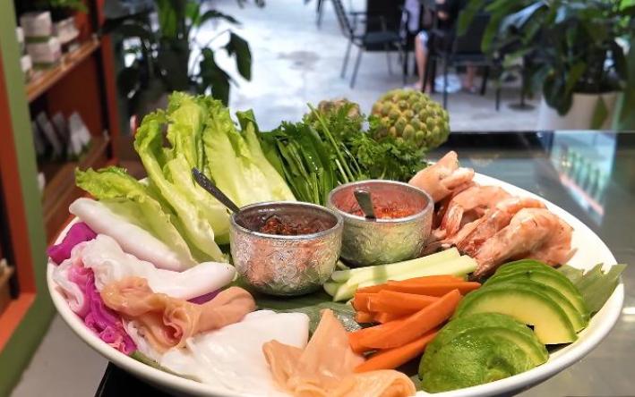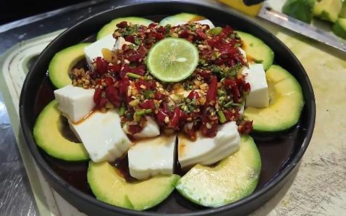 牛油果大蝦盤。每年10月,孟連傣族拉祜族佤族自治縣的牛油果開始進(jìn)入采摘高峰期,當(dāng)?shù)鼐用裼门S凸谱髁嗽S多特色創(chuàng)意美食,呈現(xiàn)出獨(dú)特的季節(jié)限定風(fēng)味。
