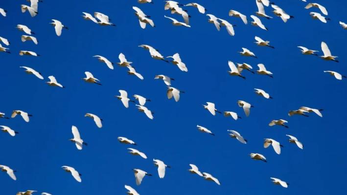 當(dāng)夕陽(yáng)西下,群鳥歸巢,鳥兒們匯聚成奔騰的浪,或自由翱翔,或自在棲息。