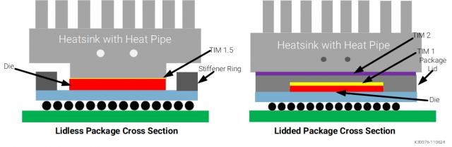 AMD同月針對嵌入式器件提出新散熱設(shè)計方案,采用優(yōu)化的TIM改善熱接觸,建議封裝選無金屬封蓋,減少內(nèi)部TIM熱阻。