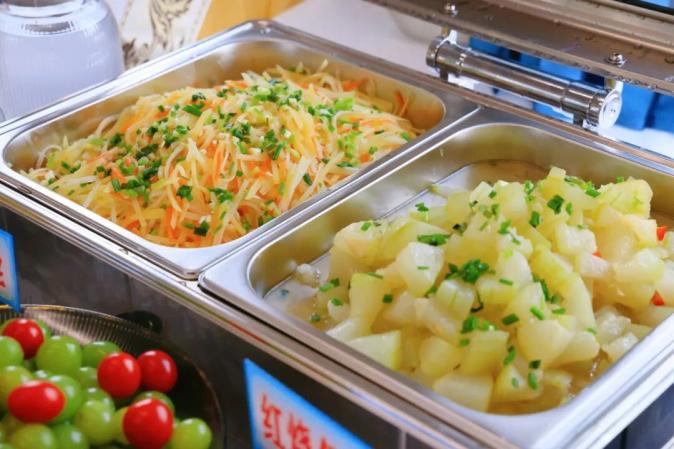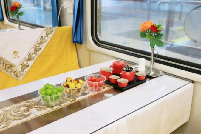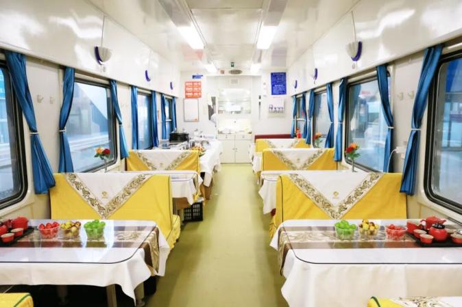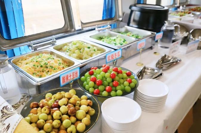 列車上提供的自助餐每餐包含四葷四素一湯、兩種時(shí)令水果,菜品豐富,營養(yǎng)均衡。