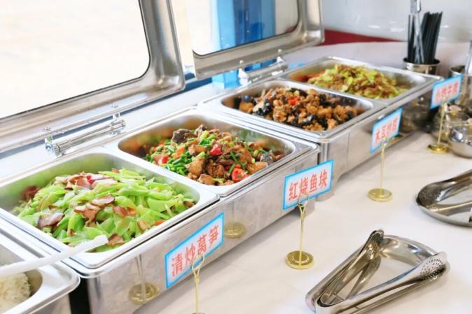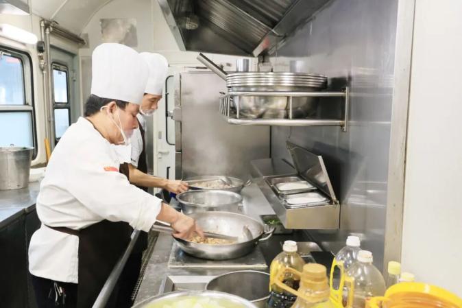 為兼顧各地旅客的飲食習(xí)慣,廚師團(tuán)隊(duì)科學(xué)定制每日菜單,推出紅燒魚塊、小炒牛肉、清炒萵筍等具有地方特色的菜品,并根據(jù)旅客反饋及時(shí)調(diào)整口味。