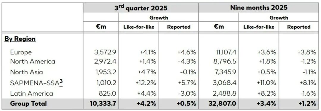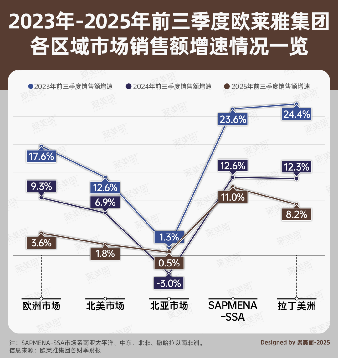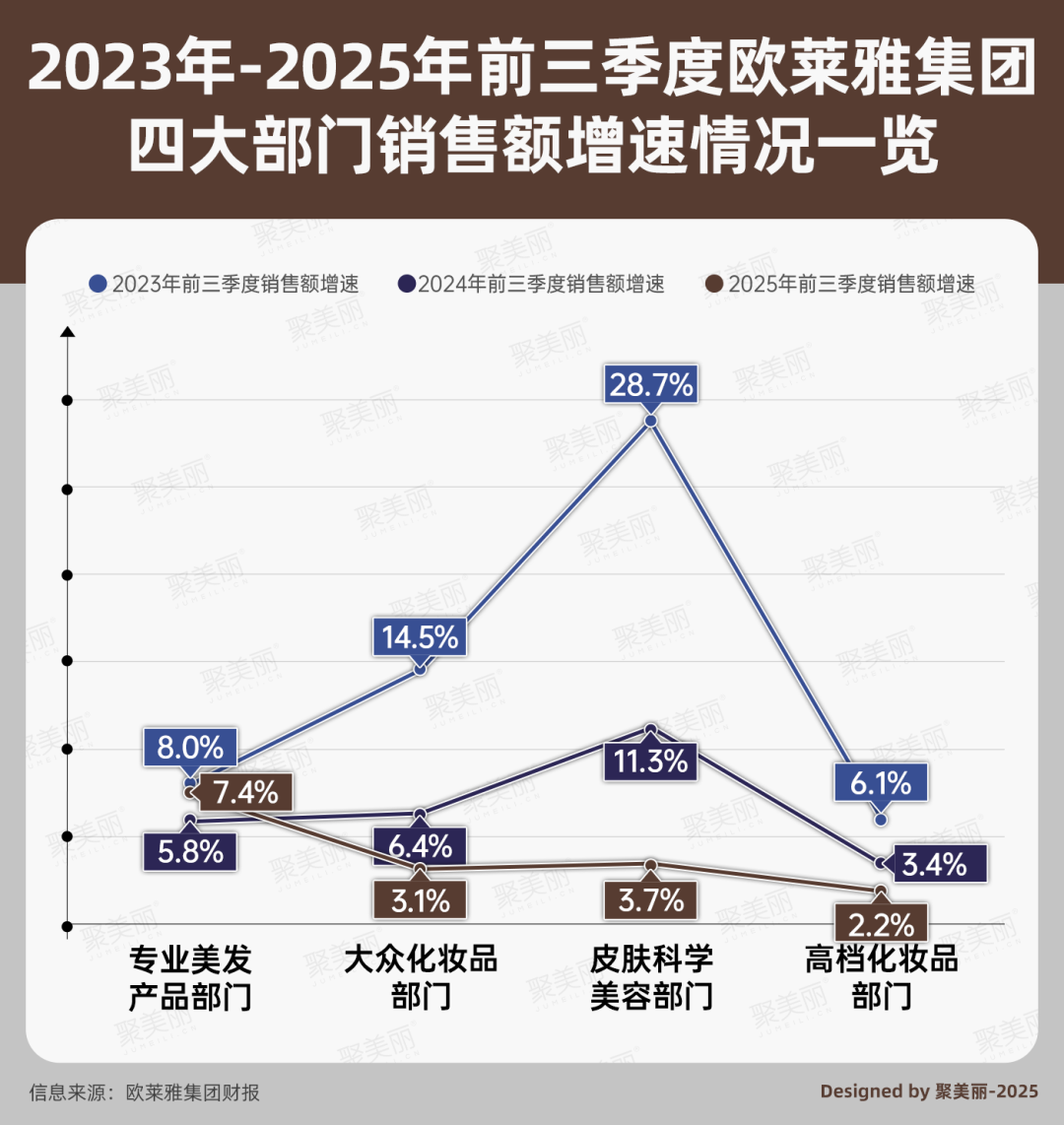 另外,梳理歐萊雅集團(tuán)2025年前三季度財(cái)報(bào)數(shù)據(jù)及財(cái)報(bào)發(fā)布后的電話會(huì)議內(nèi)容,有以下數(shù)據(jù)值得關(guān)注: