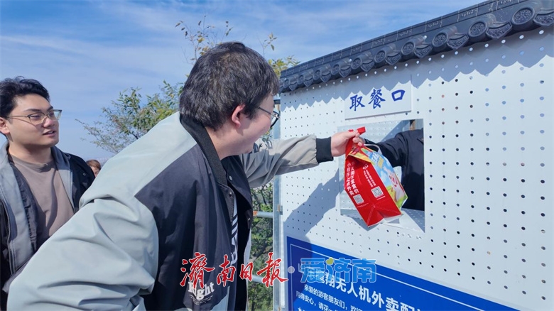 “爬到山頂,既能欣賞美景,又能喝到現(xiàn)做的熱奶茶,這種體驗(yàn)太棒了。而且這是山東首條無(wú)人機(jī)外賣(mài)航線,感覺(jué)自己很幸運(yùn),體驗(yàn)到了‘未來(lái)生活’!”天津游客沈先生和兩位伙伴告訴記者,他們?nèi)ミ^(guò)很多景區(qū),在山頂能點(diǎn)到連鎖品牌外賣(mài),這還是第一次。