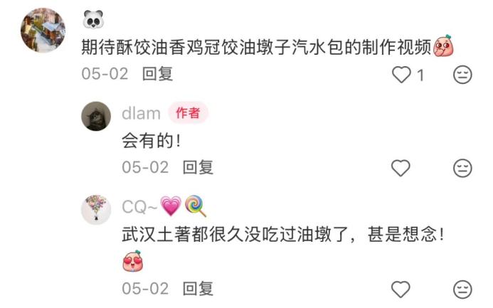 她的評(píng)論區(qū)成為各國(guó)武漢留子最靈驗(yàn)的許愿池,有網(wǎng)友留言想吃汽水包,dlam沒過幾天就發(fā)出了教程。
