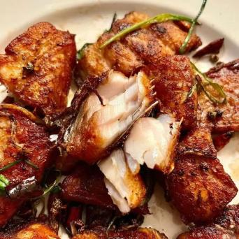不滿足于做過早,dlam還開始嘗試頂頂糕、糍粑魚、藕夾、珍珠圓子等湖北特色菜,做著做著,就琢磨出一些技巧:做豆皮剩的臊子,加點(diǎn)胡椒就能當(dāng)燒麥餡;豆皮剩的米漿可以拿來炸面窩;藕提前用鹽腌,可以變得粉糯;培根替代臘肉煸油,煨湯時(shí)能增香等?!斑€有個(gè)對(duì)味的關(guān)鍵,加致死量的黑胡椒”。