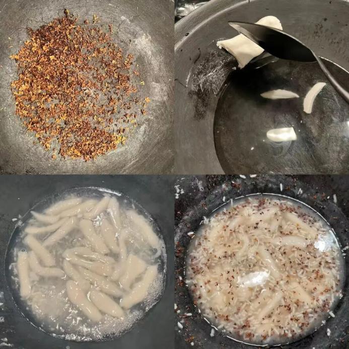 為了還原民生甜食館糊米酒灰灰的顏色,dlam用大鐵鍋 + 炒桂花的方式復(fù)刻成功,匠心十足。