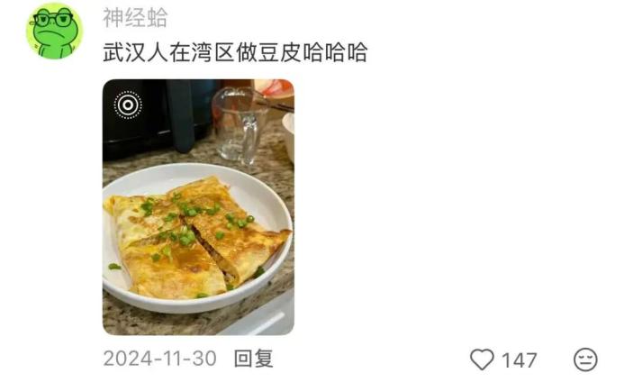 #鄂我在外面很想你 這是國(guó)慶假期后,社交平臺(tái)排名第一的熱搜。其中留學(xué)博主@dlam很特別,她用一系列自制過早教程,幫助全球各地的武漢伢復(fù)刻了舌尖上的鄉(xiāng)愁。武漢網(wǎng)友對(duì)著她做的米粑粑流涎,說“我家樓下都找不到的過早,居然在你這里看到了!”